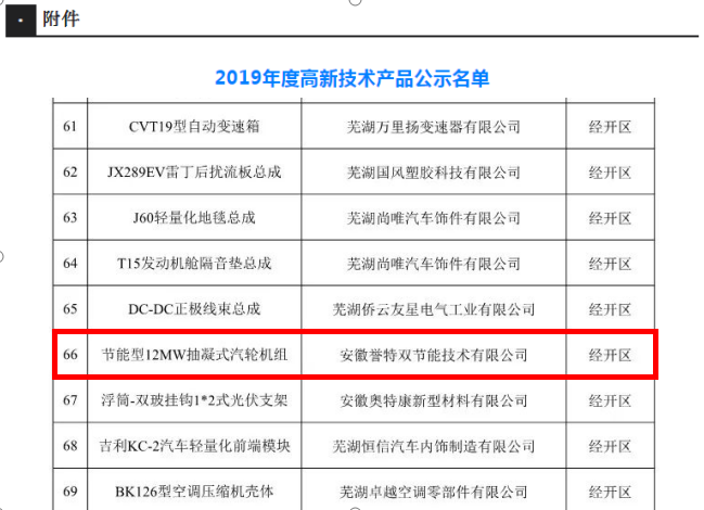 2020年1月6日,安徽省高新技術(shù)產(chǎn)品認定名單正式公布。我公司產(chǎn)品節(jié)能型12MW抽凝式汽輪機組喜獲認定,這次獲得高新技術(shù)產(chǎn)品認定再一次驗證了安徽譽特雙的卓越品質(zhì),同時也是對我司產(chǎn)品權(quán)威的肯定!