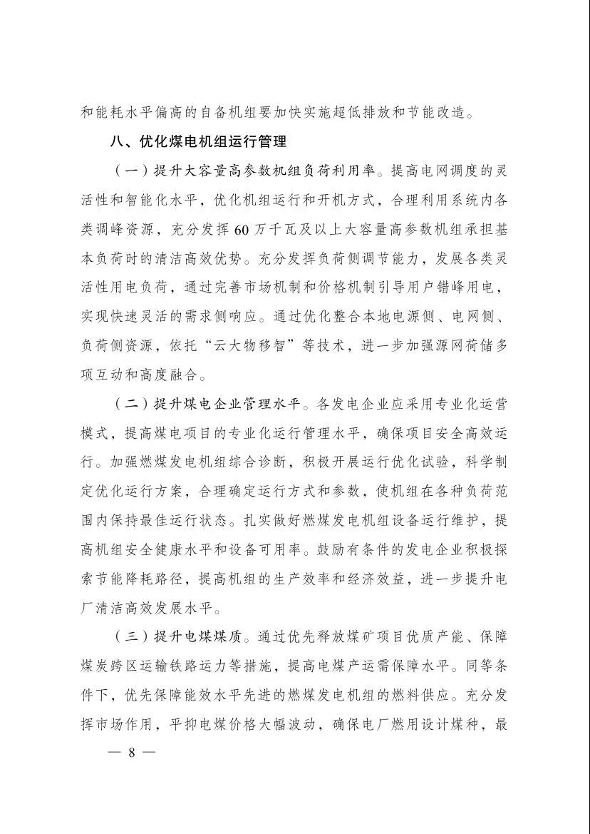 五、明確分工。各地要明確牽頭部門,與相關(guān)部門明確責(zé)任分工形成合力,共同推進(jìn)煤電機(jī)組改造升級(jí)工作。中央發(fā)電企業(yè)要與各地政府主管部門做好充分溝通,保證集團(tuán)煤電機(jī)組改造升級(jí)工作與地方有效銜接。電網(wǎng)企業(yè)要合理安排煤電機(jī)組檢修方案,保證各地煤電機(jī)組改造過(guò)程中電網(wǎng)安全平穩(wěn)運(yùn)行。
