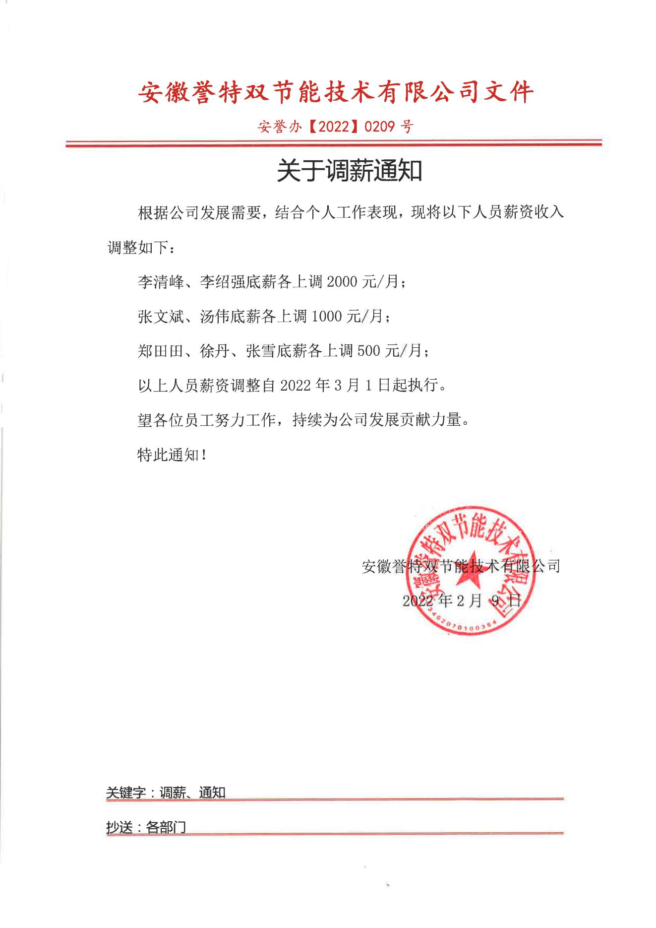 上圖為2022年2月9日臨時調(diào)薪通知