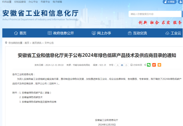公司三項目入選安徽省2024年綠色低碳產(chǎn)品技術(shù)及供應(yīng)商目錄