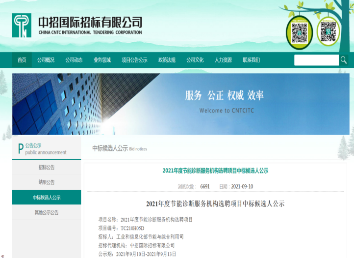 9月10日,公司通過工業(yè)和信息化部節(jié)能與綜合利用司的采購招標程序,順利中標“2021年度節(jié)能診斷服務(wù)機構(gòu)選聘項目”。這是繼2019、2020年之后,第三次中標年度節(jié)能診斷服務(wù)機構(gòu)選聘項目,我公司已累計為21家工業(yè)企業(yè)提供公益性節(jié)能診斷服務(wù)。