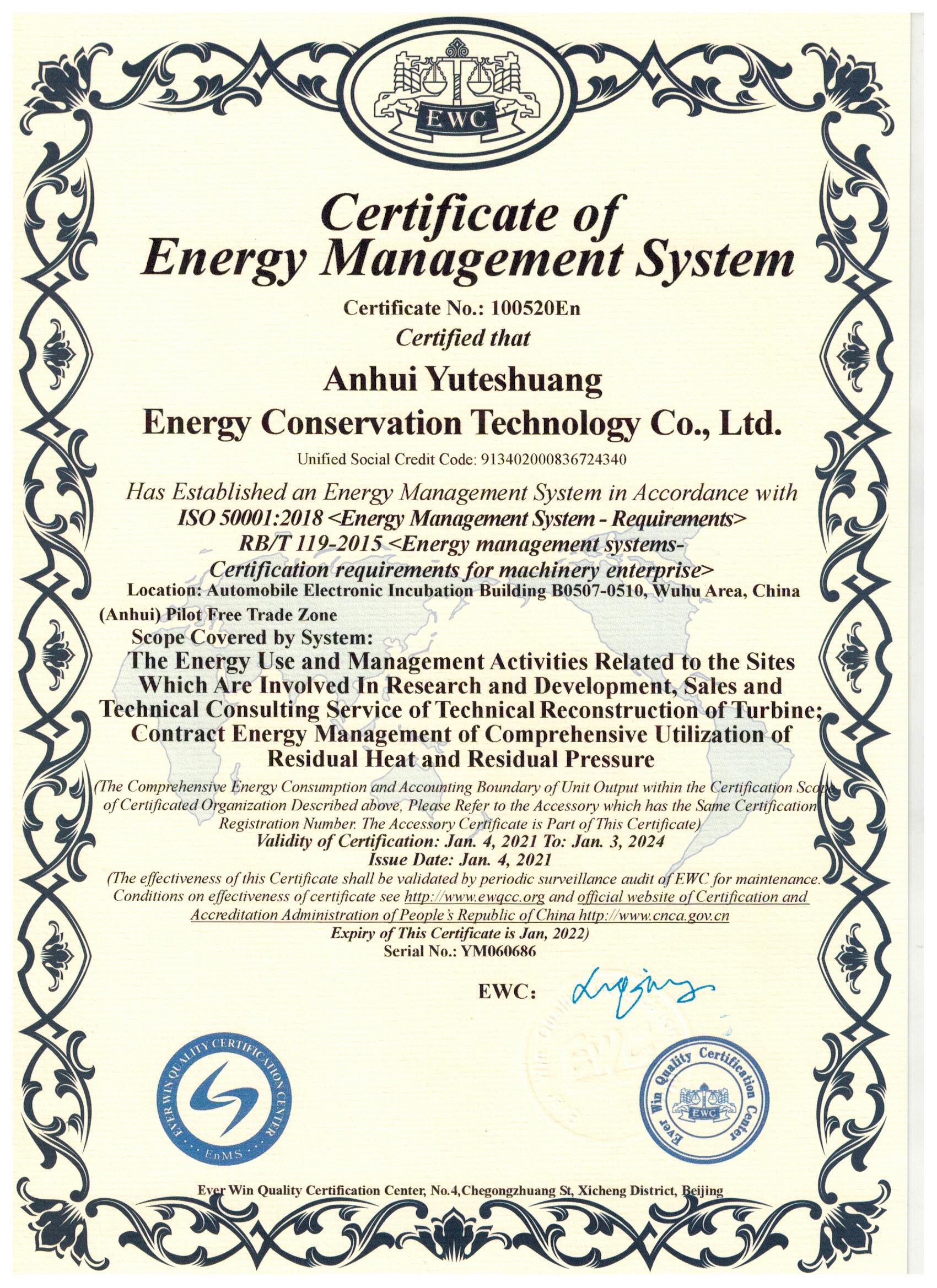 此次能源管理體系認(rèn)證審核工作的順利完成,不僅是對我公司能源管理體系工作的充分認(rèn)可,同時也標(biāo)志著公司管理體系建設(shè)再上新臺階,為工業(yè)節(jié)能領(lǐng)域熱工系統(tǒng)合同能源管理主營業(yè)務(wù)的廣泛市場開拓奠定堅實(shí)的軟件支撐基礎(chǔ)。