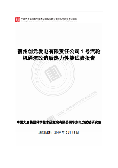 2019年5月15日,由我公司以EPC模式全額投資技改實施的宿州創(chuàng)元發(fā)電有限責(zé)任公司1#汽輪機組綜合技改提效項目,順利通過第三方節(jié)能量驗收。
