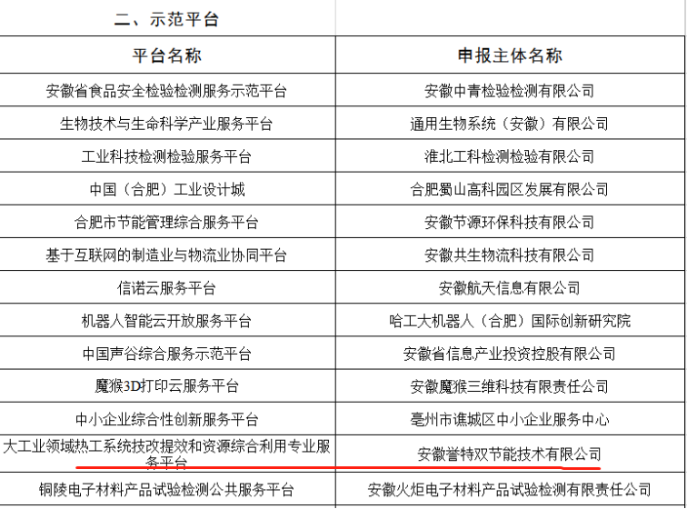 安徽省第二批服務(wù)型制造示范平臺(tái)