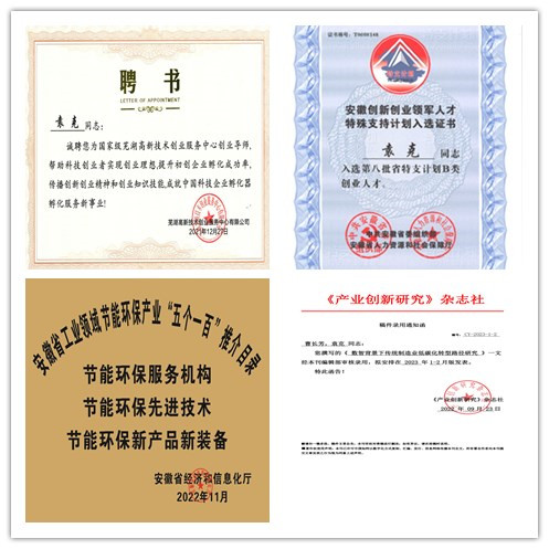 2022年公司獲得了多項榮譽(yù)資質(zhì)。為企業(yè)贏得市場信譽(yù),增加影響力,提升品牌形象:公司入選安徽省“專精特新”中小企業(yè);與安徽信息工程學(xué)院合作撰寫產(chǎn)業(yè)創(chuàng)新研究項目《數(shù)智背景下傳統(tǒng)制造業(yè)低碳化轉(zhuǎn)型路徑研究》將于2023年1月份已在《產(chǎn)業(yè)創(chuàng)新研究》雜志社發(fā)布;入選2022年蕪湖市雛鷹培育計劃名單;研發(fā)項目在蕪湖市科技局成功立項;總經(jīng)理袁克認(rèn)定入選安徽省第八批“特支計劃”創(chuàng)新創(chuàng)業(yè)領(lǐng)軍人才;入選安徽省節(jié)能環(huán)保產(chǎn)業(yè):“五個一百”推介目錄;總經(jīng)理袁克獲聘國家級科創(chuàng)中心”創(chuàng)業(yè)導(dǎo)師“榮譽(yù)稱號;獲選“安徽省中小企業(yè)公共服務(wù)示范平臺”與“蕪湖市中小企業(yè)公共服務(wù)示范平臺”。