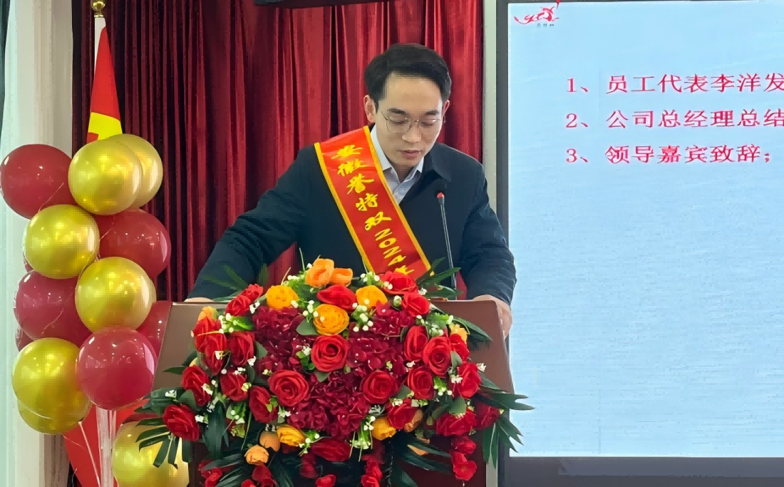 公司特邀嘉賓代表分別作了指導(dǎo)講話,一致對(duì)安徽譽(yù)特雙所取得的成就表示贊同和認(rèn)可,也希望譽(yù)特雙在今后工作中齊心協(xié)力、努力拼搏、攜手共進(jìn),創(chuàng)造新的業(yè)績(jī)?cè)鲩L(zhǎng)與發(fā)展壯大!同時(shí),2024年度明日之星獲得者李洋作為員工代表進(jìn)行了發(fā)言。