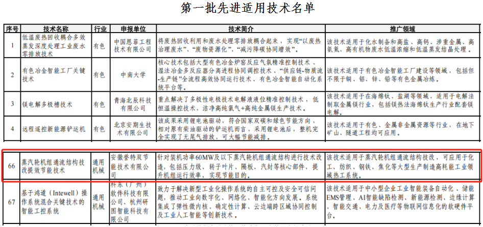 近日,工業(yè)和信息化部在全國范圍內(nèi)開展先進(jìn)適用技術(shù)(第一批)遴選工作,經(jīng)自主申報、形式審查、專家評審等程序,最終擇優(yōu)評選出111項技術(shù)列入工信部第一批先進(jìn)適用技術(shù)目錄,我公司“蒸汽輪機(jī)組通流結(jié)構(gòu)技改提效節(jié)能技術(shù)”榮列榜單,在此表示熱烈祝賀。